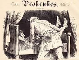 2.- LECHO DE PROCUSTO: Procusto era un personaje de la mitología griega que ofrecía posada a los viajeros, a quienes obligaba a acostarse en una cama de hierro, donde, si eran más largos que la cama, les cortaba la parte sobrante de las piernas, y si eran más pequeños, los estiraba, descoyuntándolos, hasta que calzaran con el espeluznante catre. Esta leyenda, con sus varias versiones en las que cambian algunos detalles, es una formidable expresión de la mentalidad idiota; palabra que viene del griego idios, que significa lo propio, es decir, idiota es todo aquel que ve sólo lo propio y nada más. El idiota desecha todo lo que no encaja con su miope visión. No sólo es una visión pobre, sino ridícula, porque pretende ser la medida de todas las cosas.