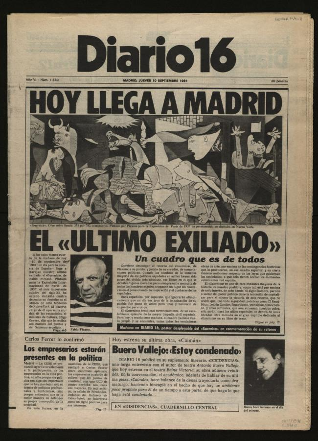 Un día como hoy pero de 1981 – El Guernica de Picasso vuelve a España procedente del Museo de Arte Moderno de Nueva York junto a los 23 bocetos que lo completan.
