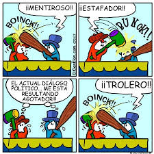 Tal vez el vértigo que imprime la globalización imperante obliga a respuestas rápidas y contundentes. Por eso el presidente tiene un vocabulario que al principio parecía disruptivo y hasta con la inocencia adolescente, pero que hoy suena muy agresivo y provocador. Los Cerimedo, los “gordo Dan”, los Agustín Romo y toda la caterva de trolls imponen el contagioso uso de todas las falacias del repertorio para defender a las “fuerzas del cielo” de los que “no la ven”.