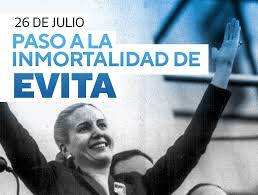 El 26 de julio recordaremos, también, la memoria de la que fuera LA ABANDERADA DE LOS HUMILDES y canonizada por el pueblo como “Santa Evita”.