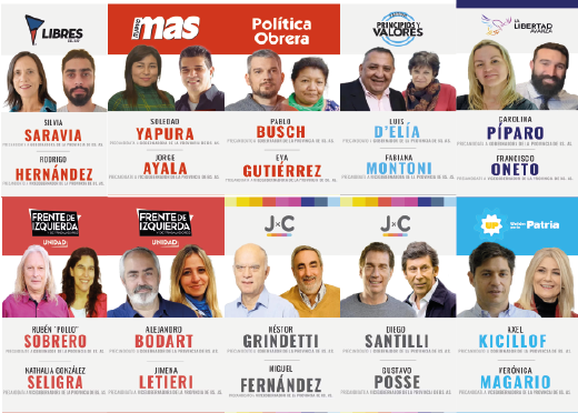 - La Libertad Avanza (lista única) – El espacio encabezado por Javier Milei, en tanto, presentará una lista única. La Libertad Avanza, entonces, tendrá como candidata a gobernador a Carolina Píparo y como vice a Francisco Oneto.