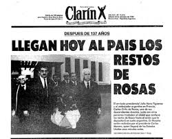 Un día como hoy pero de 1989 – Llegan al país los restos de Juan Manuel de Rosas, hasta entonces enterrado en Southampton, Inglaterra.