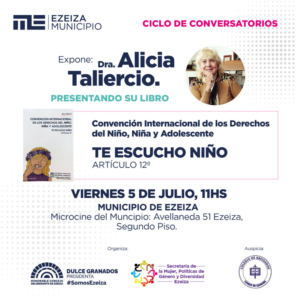 El día viernes 5 de julio en el microcine de la Municipalidad de Ezeiza se desarrolló un evento que tuvo como centro de todas las miradas a las niñas, niños y adolescentes, con la presencia de la Dra. Alicia TALIERCIO, la Secretaria de la Mujer de Ezeiza Dra. Natalia SENA y el Dr. Omar BARRAGAN.