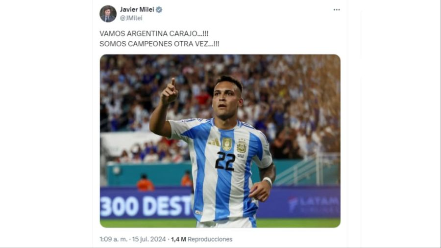 «Vamos Argentina carajo! Somos campeones otra vez», expresó el mandatario nacional en su cuenta de la red social X.