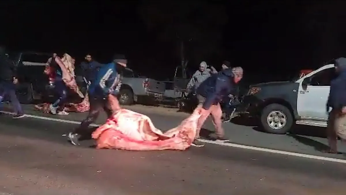 La desesperación de la gente siempre puede sorprender, sí a eso le suma la crisis económica, se podría decir que se toman medidas desesperadas. Así fue como un camión que transportaba 23 mil kilos de carne fue saqueado por un grupo de vecinos, luego de que el conductor volcará sobre una banquina a la altura de San Luis, dejando caer parte de la mercadería fuera del vehículo.